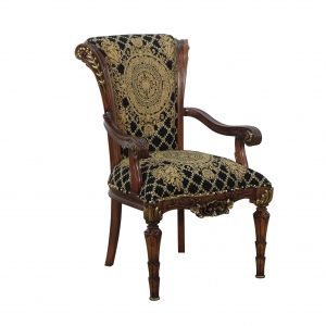 Valentine Dining Arm Chair With Damask Gold Fabric