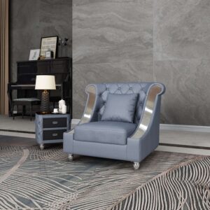 Mayfair Chair Premium Gray Italian Leather The sofa set takes inspiration from the glamorous charm of English style, recalling its soft, classical forms, with ostentatious...
