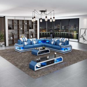 Lightspeed LED Modern Sectional Blue White Italian Leather