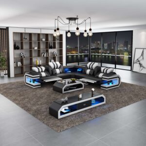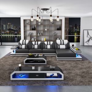Lightspeed LED Modern Sectional Black White Italian Leather