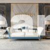 • Color: off white-Blue. Solid Wood Inner Frame with L-braced and glued corner block. Seat Fill:90%  High Density Foam 10% synthetic fiber Pillow Arms & Lose Back