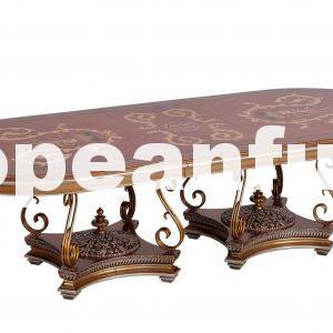 European Furniture has created a piece which, as well as being an extraordinary example of refinement, also has an unusual patented extension which takes nothing away from the beauty of the whole piece. It has marvellous inlays with numerous precious woods. The richness of the decorations, the sumptuousness of the exquisite, refined details and the magnificence of the collection in its entirety recall the opulence typical of Baroque furniture. Precious materials and refined finishings for the collection Empire style dining room. The quality of the essences is enriched with the application in carving and inlay. Refined details like the appliques with life scenes on the Single Pedestal and the inlay in entire of the table make this Empire style collection a product destined to people who are able to appraise the luxury