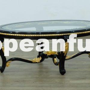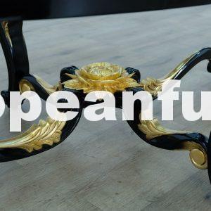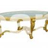 Bellagio III Oval coffee table wants to show off its expertise in hand carve and gold leaf finished decorations entire of collection. The richness gold leafs of the decorations, the sumptuousness of the hand carving refined details and the magnificence of the collection in its entirety recall the opulence typical of Baroque furniture, interpreted by the designer with designs and decorations that allude to the elegance of classic European style
