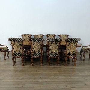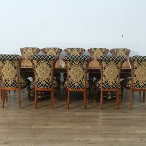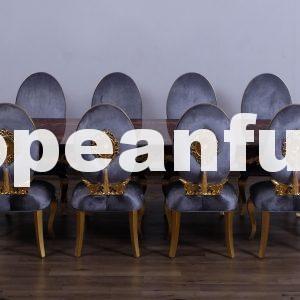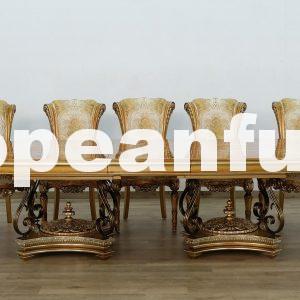European Furniture has created a piece which, as well as being an extraordinary example of refinement, also has an unusual patented extension which takes nothing away from the beauty of the whole piece. It has marvellous inlays with numerous precious woods. The richness of the decorations, the sumptuousness of the exquisite, refined details and the magnificence of the collection in its entirety recall the opulence typical of Baroque furniture. Precious materials and refined finishings for the collection Empire style dining room. The quality of the essences is enriched with the application in carving and inlay. Refined details like the appliques with life scenes on the Single Pedestal and the inlay in entire of the table make this Empire style collection a product destined to people who are able to appraise the luxury