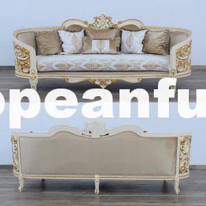 100% Hand carved and handcrafted, Mahogany wood solid on the side of sofa and loveseat