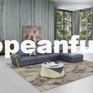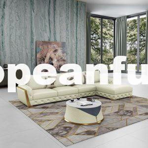 The Castello sectional collection is inspired by the style and the world of the 20s, quality and elegance come together creating elements with glamorous shapes. Sectional set that are tufted and upholstered in Italian leather with decorated Stainless steel gold inserts on the armrests, available with off white and Gray premium Italian leather