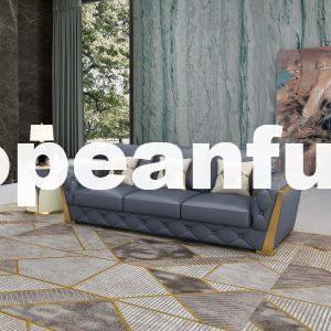 The Castello living room collection is inspired by the style and the world of the 20s, quality and elegance come together creating elements with glamorous shapes. Sofa set that are tufted and upholstered in Italian leather with decorated Stainless steel gold inserts on the armrests and legs.