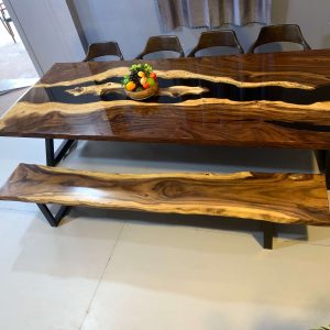 European Furniture Collection is one of the exclusive designers and producers of luxury handmade Live edge and Epoxy dining tables. All of the products based on wood and epoxy resin are one of a kind. For each unique piece, European Furniture Collection uses high-quality epoxy resin along with carefully selected 100- to 350-year-old Monkey Pod, Sour and walnut wood and olive tree slabs to create unique, one-of-a-kind statement pieces. Because of the uniqueness of the wood shape and patterns this table is one of a kind and never can be reproduced 100% the same. We have some more slabs from the same wood and we can create a customized tables or desks that fits your requirements for size, height, resin color and legs. European Furniture Collection is one of the exclusive designers and producers of luxury handmade Live edge and Epoxy dining tables. All of the products based on wood and epoxy resin are one of a kind