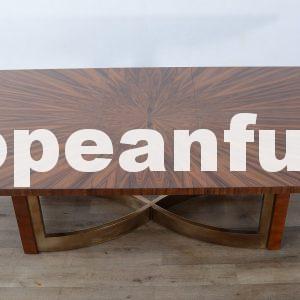 Inspired by Hollywood glamour, this glamour dining chair collection comes in beautiful natural rosewood finish, the dining table comes wrapped with in an exotic Brazilian Rosewood veneer Sunburst designed, and sealed with a high gloss polyester natural rosewood finish.The top comes with a 21″ extension. The base crafted in Mahogany wood solid finished in bronzed and set with a beautifully crafted.