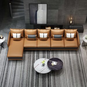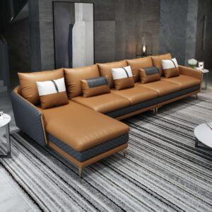 Return To ShopIcaro Mansion Sectional Cognac Gray Italian Leather
