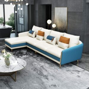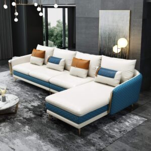 Return To ShopIcaro Sectional White-Blue Italian Leather
