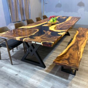 European Furniture Collection is one of the exclusive designers and producers of luxury handmade Live edge and Epoxy dining tables. All of the products based on wood and epoxy resin are one of a kind. For each unique piece, European Furniture Collection uses high-quality epoxy resin along with carefully selected 100- to 350-year-old Monkey Pod, Sour and walnut wood and olive tree slabs to create unique, one-of-a-kind statement pieces. Because of the uniqueness of the wood shape and patterns this table is one of a kind and never can be reproduced 100% the same. We have some more slabs from the same wood and we can create a customized tables or desks that fits your requirements for size, height, resin color and legs. European Furniture Collection is one of the exclusive designers and producers of luxury handmade Live edge and Epoxy dining tables. All of the products based on wood and epoxy resin are one of a kind