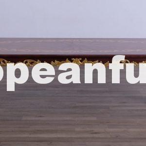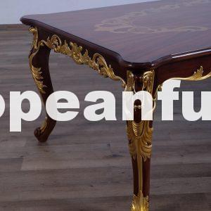 The spectacular top of the Luxor Leg Dining Table is decorated with Brazilian rosewood veneers in a sunburst design and maple inlay . The tabletop edge is finished with leaf carved gadroons and the generously scaled cabriole legs are fully carved with shells, acanthus leaves and beads, terminating in gracefully scrolled feet. With the addition of 1 21″ leaves (included) the table can be expanded to seat ten; the leaves storage under table top.