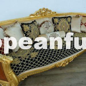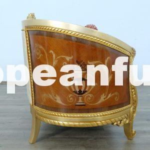 The spectacular of the Luxor collection, the luxor sofa side view is decorated with rosewood, Ebony veneers vase design and maple inlay . The frames is finished with gold leaf hand carved and the generously scaled cabriole legs terminating in gracefully scrolled feet. The Luxor sofa set works beautifully available upholstered in our vast of range choice fabrics.