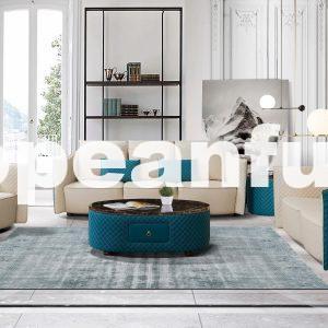 The Makassar collection is a prime example of world class craftsmanship with unique and creative designs. It starts with a diamond tufted patterns white stitching colored which outlines the soft diamond tufted patterns of the genuine leather and the center cushions padded with a smooth finish. Available Off White & Blue, Off White-Orange and lite grey with taupe, with the sofa loveseat and chair the Makassar living room set is an absolute must have for any contemporary living area.