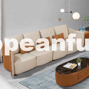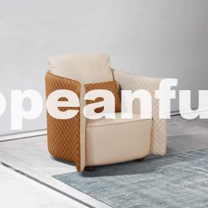 The Makassar collection is a prime example of world class craftsmanship with unique and creative designs. It starts with a diamond tufted patterns white stitching colored which outlines the soft diamond tufted patterns of the genuine leather and the center cushions padded with a smooth finish. Available Off White & Blue, Off White-Orange and lite grey with taupe, with the sofa loveseat and chair the Makassar living room set is an absolute must have for any contemporary living area.