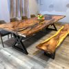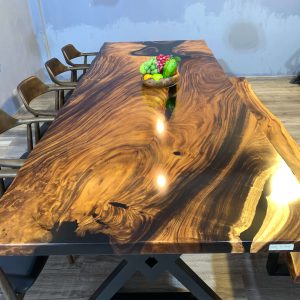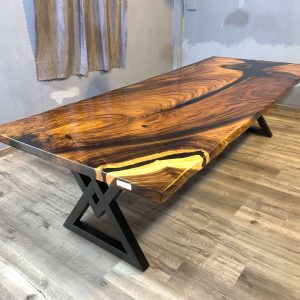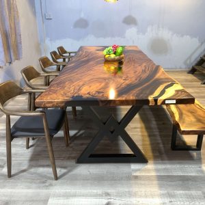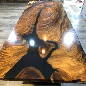 European Furniture Collection is one of the exclusive designers and producers of luxury handmade Live edge and Epoxy dining tables. All of the products based on large solid slap wood and epoxy resin are one of a kind. For each unique piece, European Furniture Collection uses high-quality epoxy resin along with carefully selected 100- to 350-year-old Monkey Pod, Sour and walnut wood and olive tree slabs to create unique, one-of-a-kind statement pieces. Because of the uniqueness of the wood shape and patterns this table is one of a kind and never can be reproduced 100% the same. We have some more slabs from the same wood and we can create a customized tables or desks that fits your requirements for size, height, resin color and legs. European Furniture Collection is one of the exclusive designers and producers of luxury handmade Live edge and Epoxy dining tables. All of the products based on wood and epoxy resin are one of a kind