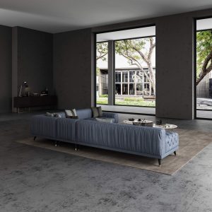 With its modern design, the modular sectional Outlander perfectly represents the eclectic style of the brand. Customizable in both composition and upholstery with aniline Italian leather. An original feature of the Outlander sectional modular is the possibility of inserting units on living room allowing the creation of multi-function compositions. The upholstery is available in different 3 leathers from the collection, while the sophisticated details in bronzed brass enhance the elegant and sophisticated charm of the sectional.