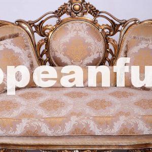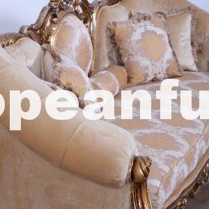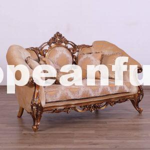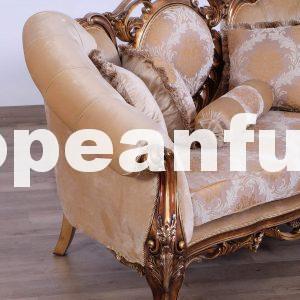A luxurious living room in baroque style designed to furnish the living areas of apartments and luxurious villas with style and elegance is completely hand-crafted, it is handmade and has a rich carved decoration. Lush garlands of flowers that seem to climb the wooden profiles of sofas, loveseat and armchairs are making a fine show on the pieces that make up this luxurious lounge in baroque style. The carving medallion leafs and flowers on the center of sofa and loveseat, placed on the surface of the furniture – the beautiful Parisian Bronze and blended with light gold and light silver finishes – make a delicate contrast with beautiful with 2 different luxury fabric that is chosen to donate intensity to this luxury living room in Baroque style.