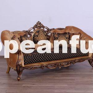 A luxurious living room in baroque style designed to furnish the living areas of apartments and luxurious villas with style and elegance is completely hand-crafted, it is handmade and has a rich carved decoration. Lush garlands of flowers that seem to climb the wooden profiles of sofas, loveseat and armchairs are making a fine show on the pieces that make up this luxurious lounge in baroque style. The carving medallion leafs and flowers on the center of sofa and loveseat, placed on the surface of the furniture – the beautiful Parisian Bronze and blended with light gold and light silver finishes – make a delicate contrast with beautiful with 2 different luxury fabric that is chosen to donate intensity to this luxury living room in Baroque style.