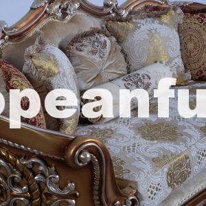 The new Saint Germain loveseat collection inspired by the majestic imperial style. The Italian design is enriched by the refined details and contrast offered by the hand carved to create noble environments in a welcoming home, elegant and refined home. The Saint Germain collection the greatness of style, 100% Hand Made & carved by design. The spacial attention to detail emerges in the finishing of the fabric. Artistic forms and structural ornamentation are achieved through hours of work by upholstery of craftsman. The Saint Germain available upholstered in our vast of range choice fabrics including velvet, damasks, gold print fabrics.