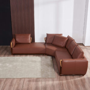 This sleek design is sure to add spice to any decor while maintaining a modernistic clean design. The Skyline sectional set is beautifully crafted from premium Italian leather all around, and prominently features wood trim decor. Seats and backs have high density foam to give you extra comfort and support. Available in russet brown or cognac.