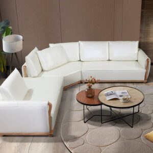 This sleek design is sure to add spice to any decor while maintaining a modernistic clean design. The Skyline sectional set is beautifully crafted from premium Italian leather all around, and prominently features wood trim decor. Seats and backs have high density foam to give you extra comfort and support. Available in russet brown or cognac.