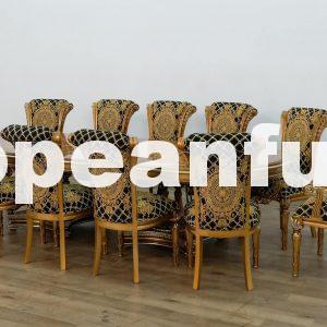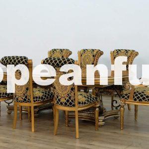 European Furniture has created a piece which, as well as being an extraordinary example of refinement, also has an unusual patented extension which takes nothing away from the beauty of the whole piece. It has marvellous inlays with numerous precious woods. The prestigious and majestic table is customizable, both in size and shape. The table top is decorated with inlaid mahogany, Ebony, Maple veneers while the basements are carved in solid mahogany wood and iron.