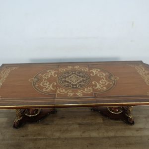 Marquetry dining table top with Rosewood, Maple, Mahogany and red Ash burl