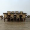 With the Valentine dining set collection, European furniture wants to show off its expertise in completely hand-crafted and gold leafs decorations. The richness of the decorations, the sumptuousness of the exquisite, refined details and the magnificence of the collection in its entirety recall the opulence typical of Baroque furniture, interpreted by the designer with designs and decorations that allude to the elegance of classic Deco style. The Valentine luxury collection, hand realized by famous artisans. Inspired to the Italian style, this great classic dining is enriched by precious carvings with gold leaf finish and covered of hi end polyester and multi jacquard fabric