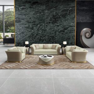 A marvel in both design and quality this sofa set is gorgeously crafted in premium Italian leather all around. The Vogue Sofa Set comfort and relaxation which combines elegant clean lines and decor with zipper and gold stainless steel legs, with functionality for a sophisticated look. The Vogue sofa set fashionable and stylish in 2 tone colors, seats and backs have high density foam to give you extra comfort and support. Available in sand beige-russet brown or Sand Beige-chocolate.